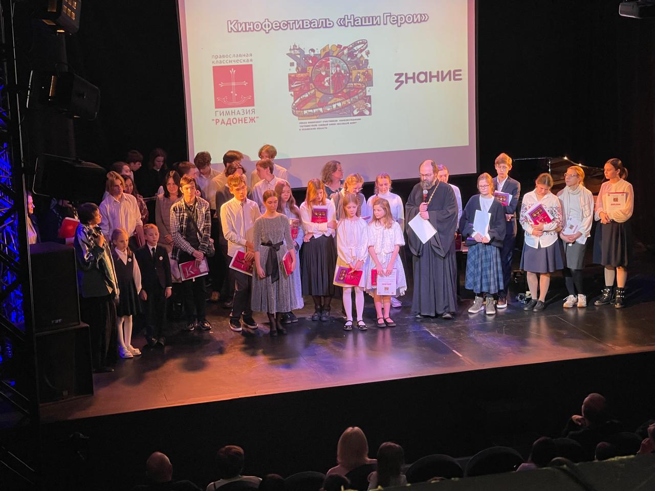 В Малом зале концертного зала "Вдохновение" собрались ученики гимназии, родители, учителя, архимандрит Мелхиседек с братией и другие гости. После просмотра фильмов, снятых во время поездки: "Киноэкспедиция", "С чего начинается Родина?", "Светочи Псковской Земли" и коротких роликов-репортажей, прошла торжественная церемония награждения.