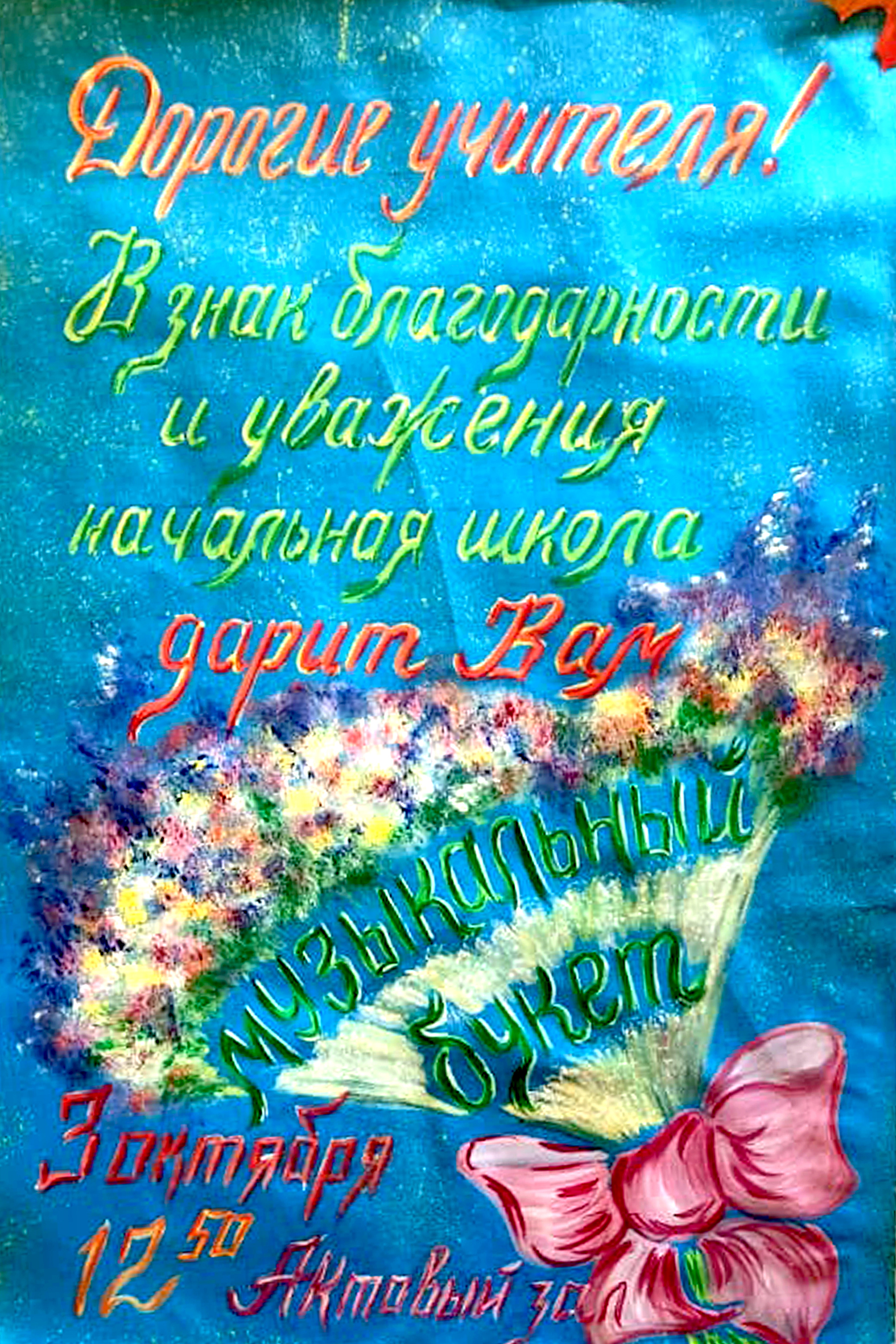 Каждый год мы отмечаем важный и значимый праздник — День учителя. День учителя — это не только праздник для педагогов, но и для всех, кто ценит знания и образование. Это день, когда мы можем вспомнить о своих любимых учителях и о том, какое влияние они оказали на нашу жизнь.3 октября в 12:50 в актовом зале пройдет творческий концерт-подарок «Музыкальный