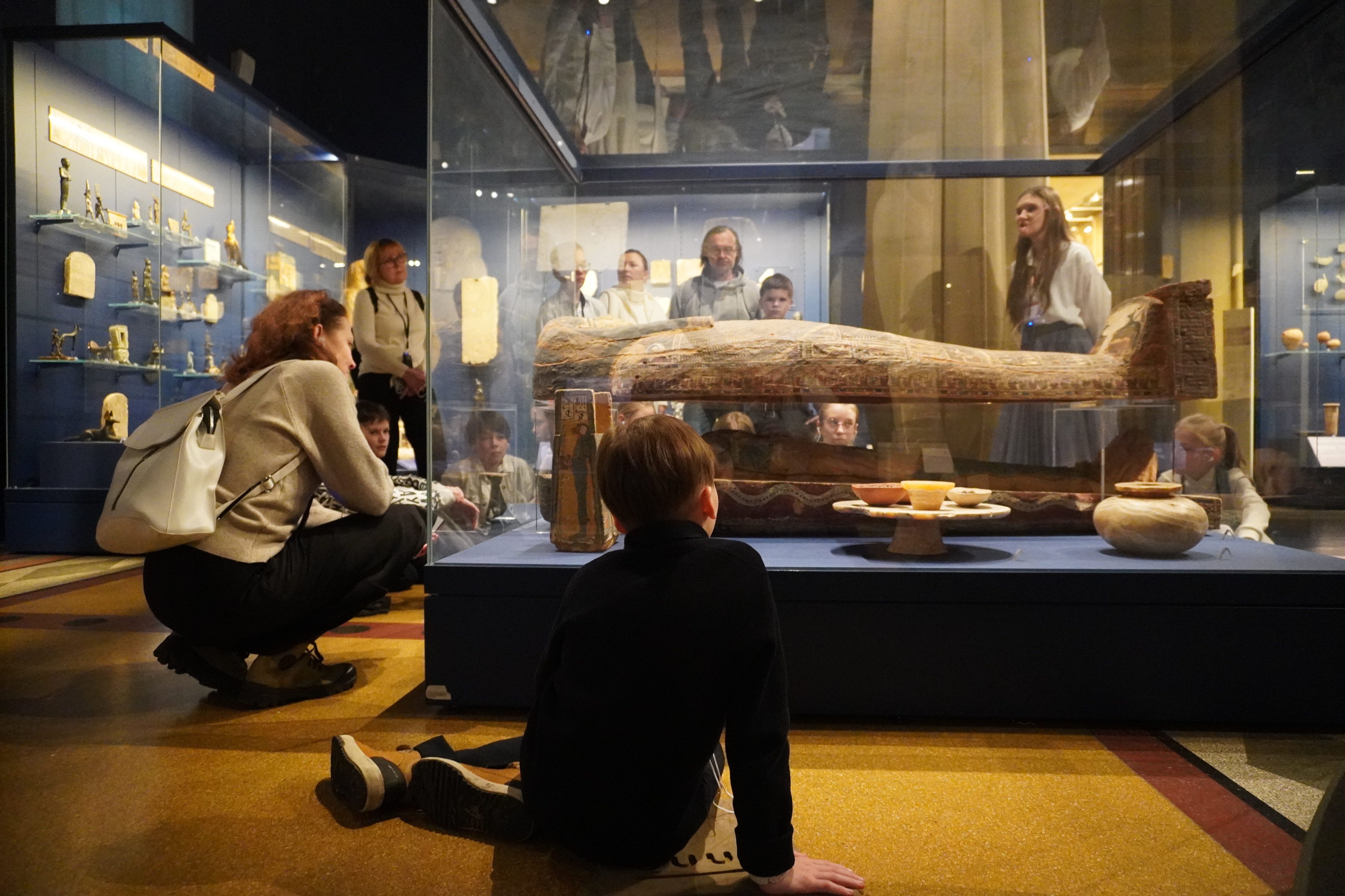 Ребята познакомились с древним Египтом — одной из самых загадочных цивилизаций. Экспозиция включала уникальные артефакты: рельефы, саркофаги, погребальные маски, статуи богов и фараонов, ритуальные сосуды, папирусы с иероглифами и разнообразные амулеты, созданные за более чем три тысячи лет истории.